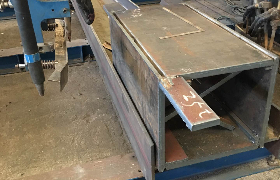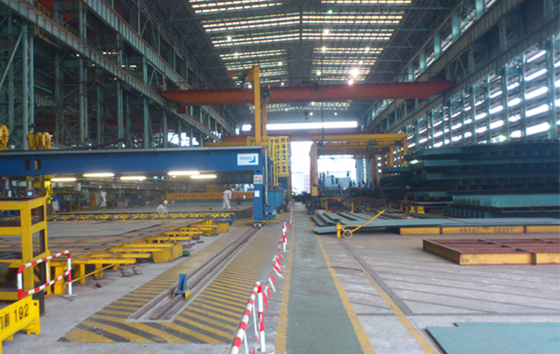 工藝示意圖“UFB法”是為了便于在設計圖標注及交流溝通過程中表述簡潔而采用的一個符號,名詞含義:U肋焊接采用陶質襯墊雙絲埋弧單面焊雙面成型的全熔透焊接工藝。字符含義:U:U型縱肋,F:焊劑(代指埋弧焊),B:襯墊。具體描述:先在組裝完成的板單元U肋內側安裝陶質襯墊,然后將板單元放置在亞船形位置的焊接工位,在U肋外側采用雙絲埋弧焊實現單面焊雙面一次成型,連接接頭全熔透,焊縫正
